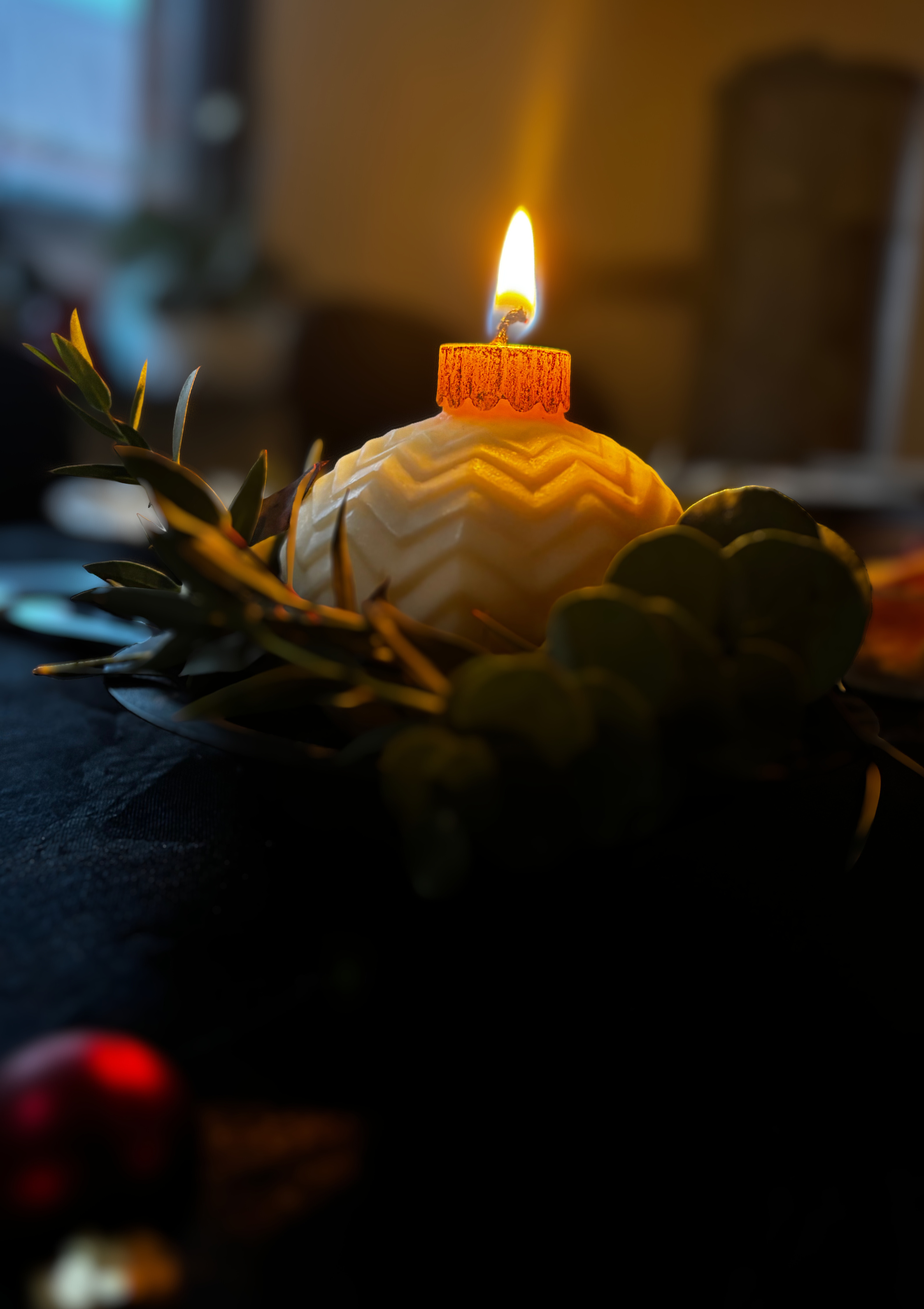 Die Kerze brennt ruhig und gleichmäßig – die Rose ist fast zu schön, um sie anzuzünden.