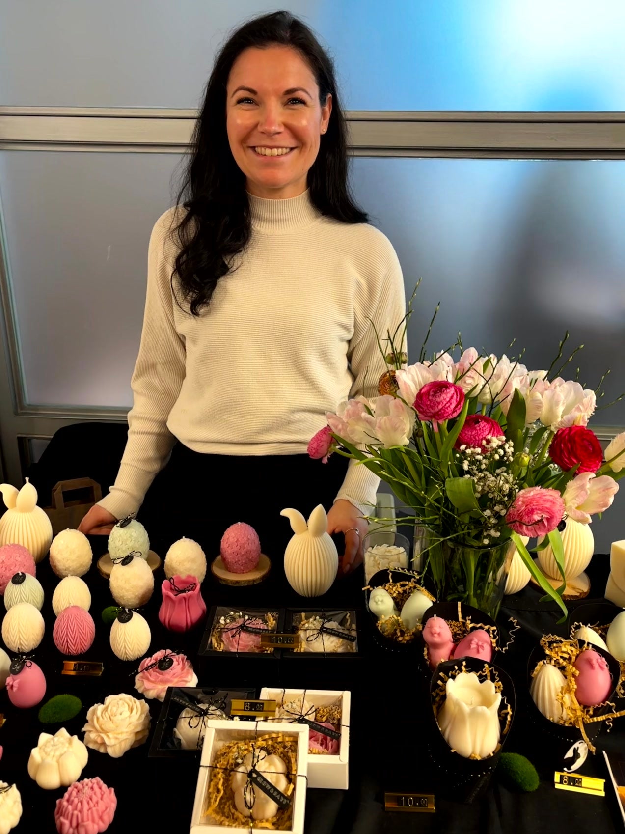 - eine große Auswahl an handgegossenen Kerzen in verschiedenen Designs