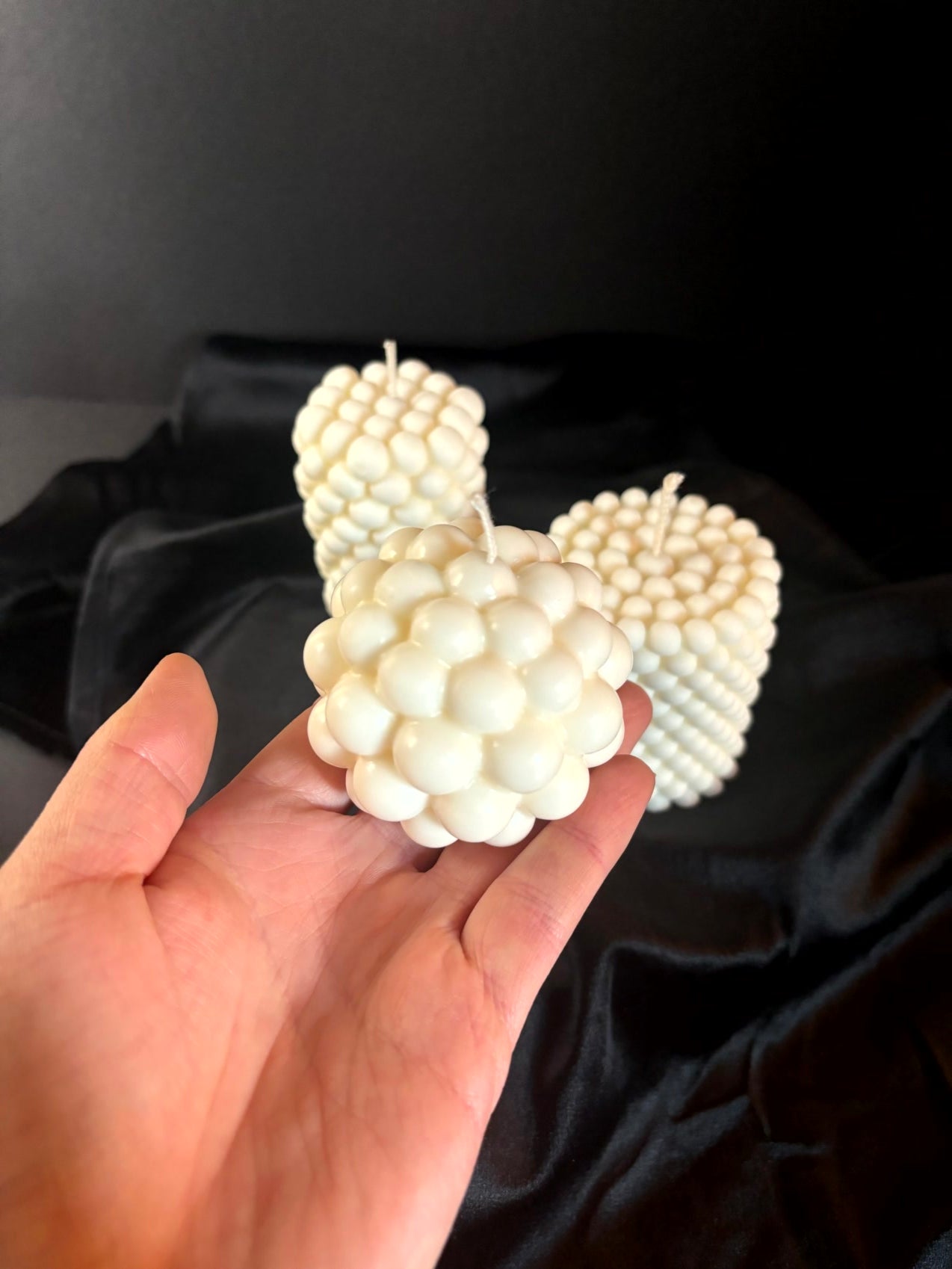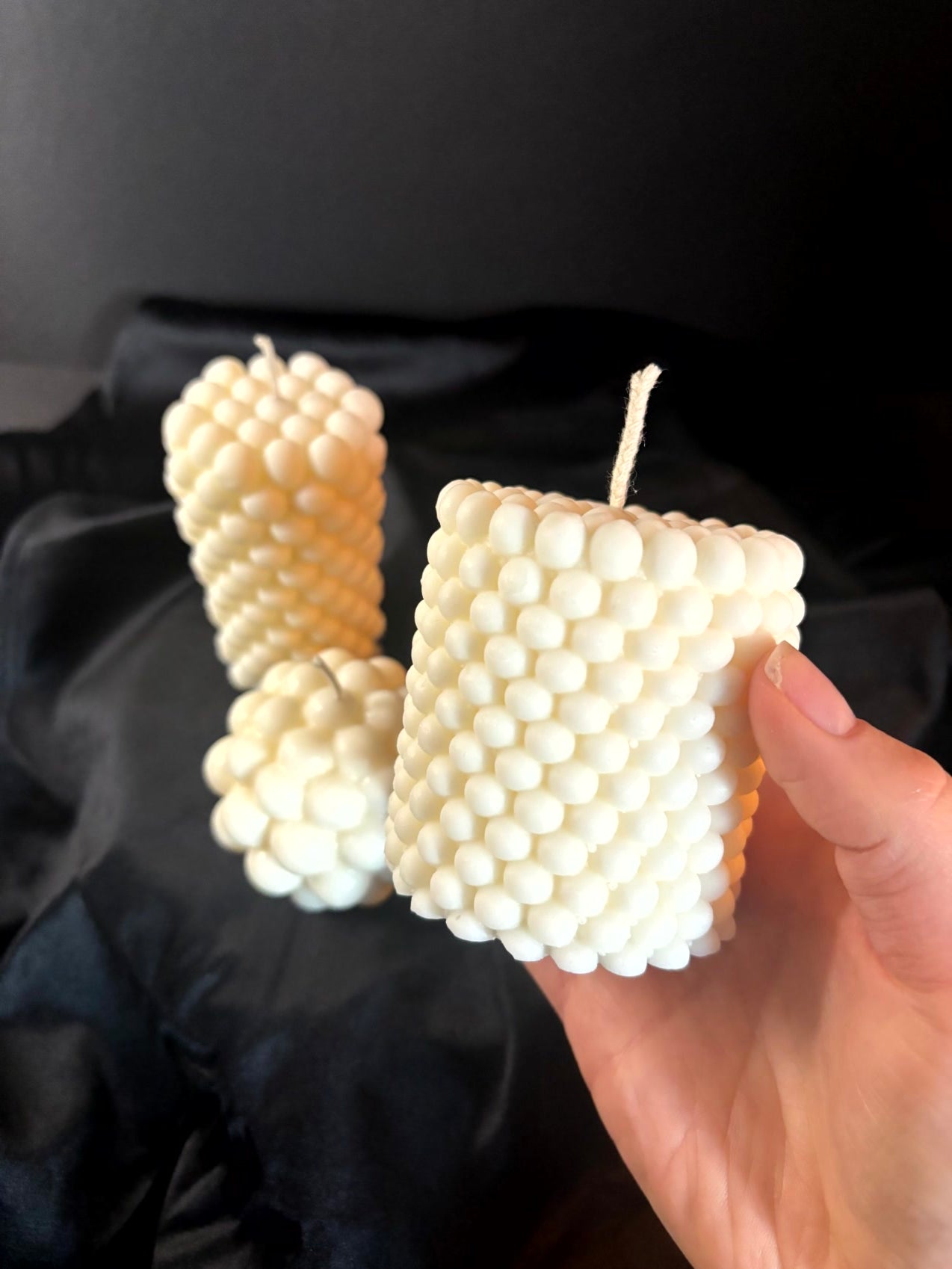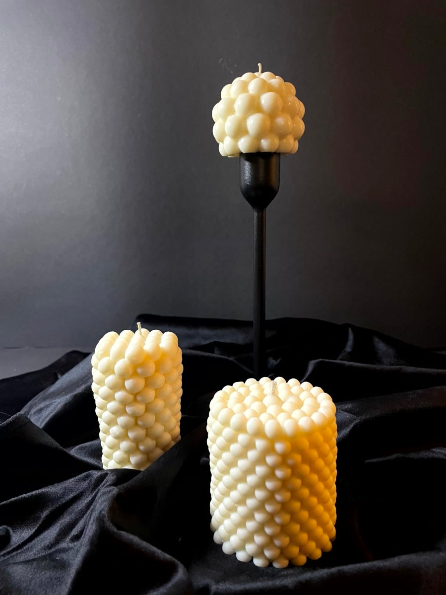 Diese handgegossenen Bubble-Kerzen sind kleine Kunstwerke voller Wärme und Leichtigkeit. Sobald du sie anzündest, entsteht dieses unverwechselbare weiche Leuchten, das du schon auf den Fotos erkennst. Jede einzelne Bubble reflektiert das Licht wie eine kleine Perle, wodurch ein warmes, beruhigendes Funkeln entsteht, das den Raum sofort sanfter, ruhiger und einladender wirken lässt.