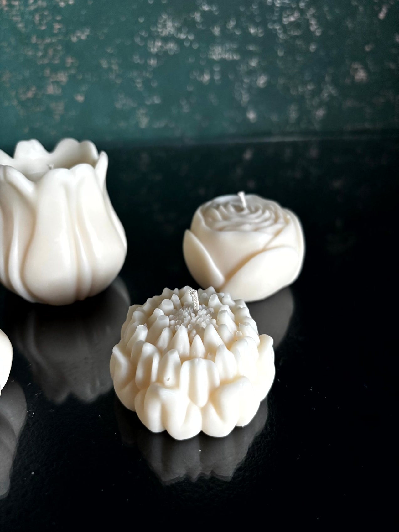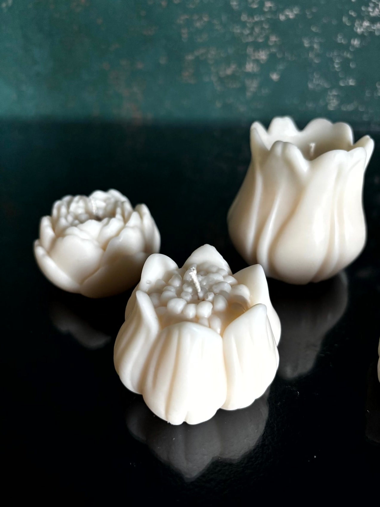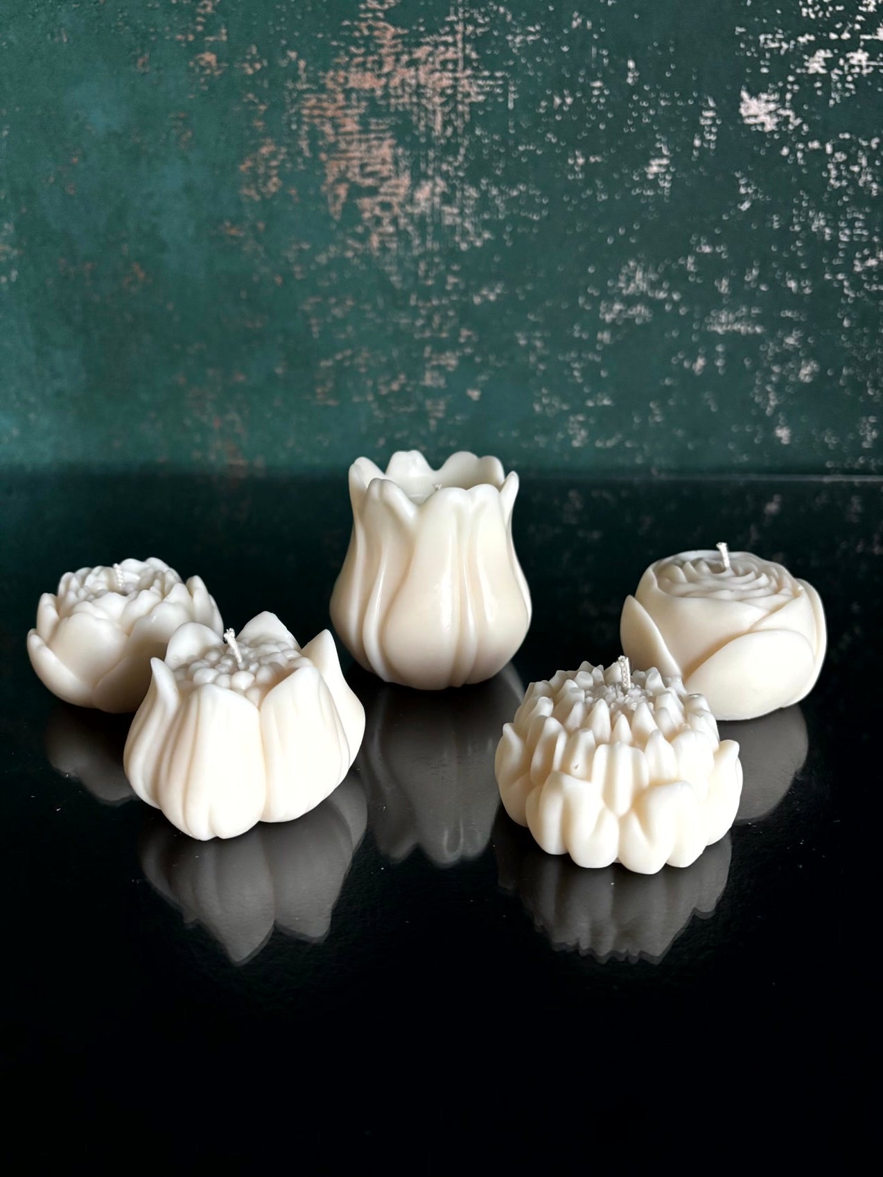 Diese Blütenkerzen bringen etwas besonderes in den Raum. Wenn sie brennen, beginnt das Wachs von innen zu leuchten und die Form zeichnet sich weich im Licht ab. Es entsteht ein Moment, der fast ein wenig staunen lässt.