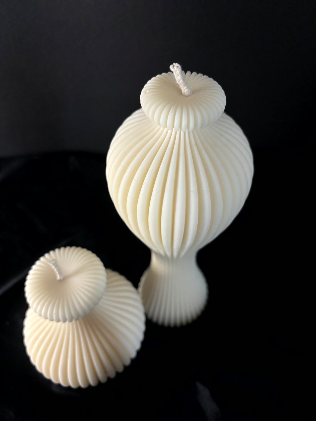 Diese handgefertigten orientalischen Kerzen erinnern mit ihrer Form an 1001 Nacht und verleihen deinem Zuhause einen Hauch von Orient. Mit ihrer geschwungenen, geriffelten Form ziehen sie alle Blicke auf sich und schaffen eine warme, einladende Atmosphäre.